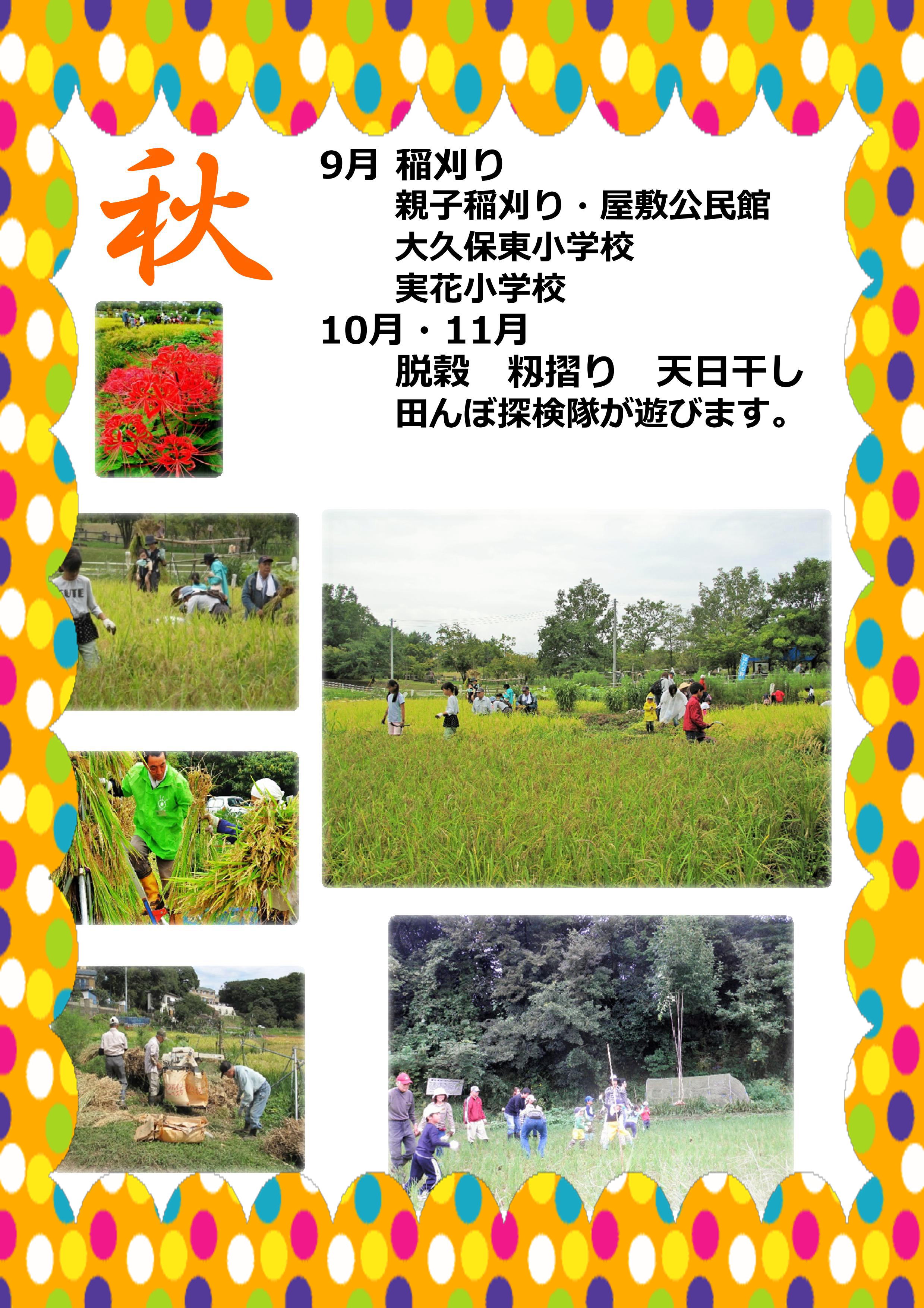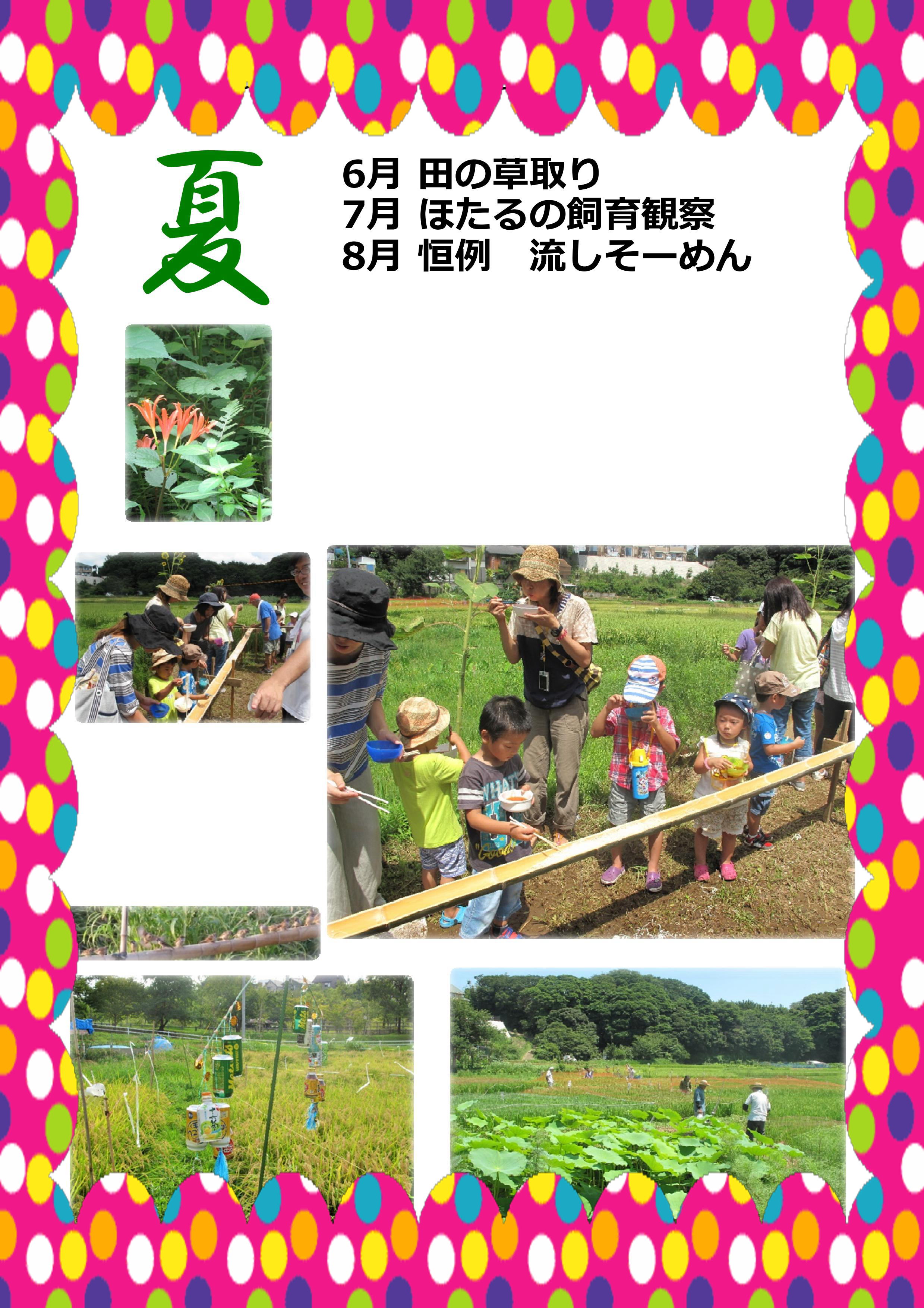<5月 鯉のぼり>    <5月 田植え>    <8月 流しそうめん>    <9月稲刈り>    <12月 餅つき>
